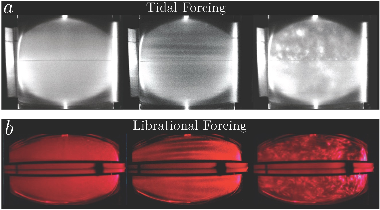 - Instabilités inertielles des fluides tournants : libration, précession et marées